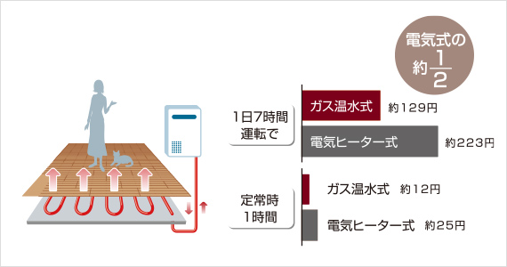 ふく遮熱効果で体の芯から暖める床暖房。温風がでないのでほこりを巻き上げず、空気を乾燥させることもありません。