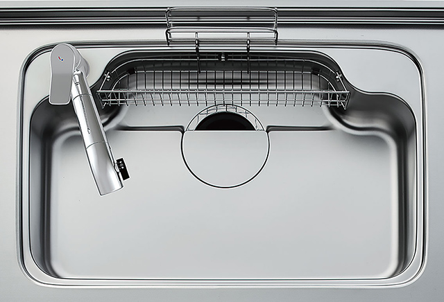 シンク底部の裏面に制振材を装着し、水はねの音や食器が当たる音を大幅に軽減する静音仕様です。