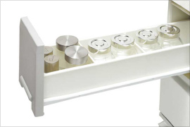引き出しが閉まる直前にスピードが落ちて、ゆっくりしまるスローインクローズを搭載。静かで安心なレールです。(耐荷重15kg)※①スパイスボックスは除く。