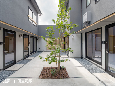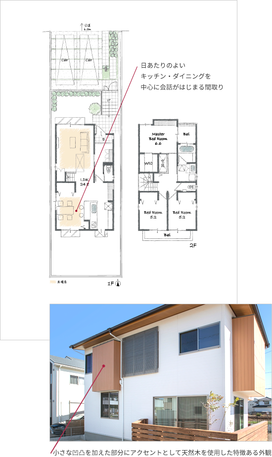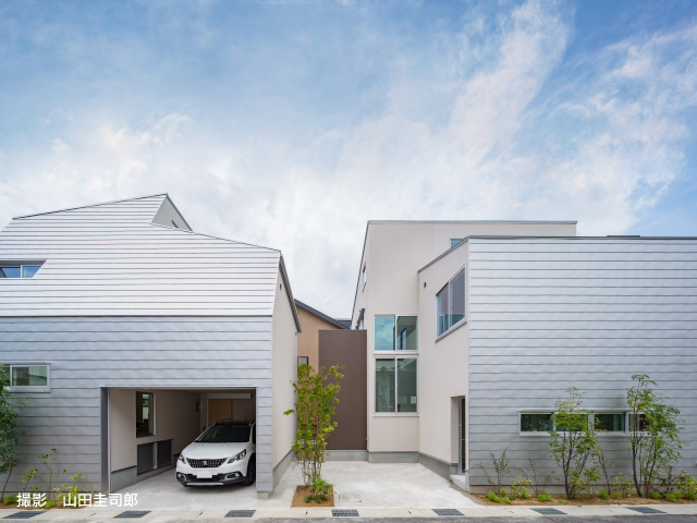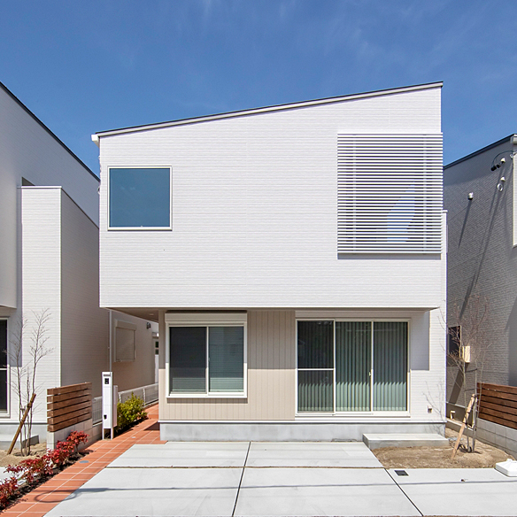 キッチン・ダイニングを中心とした間取りを増やすこと以外に、単調なデザインになりがちな総2階建住戸の可能性を広げることを考えました。