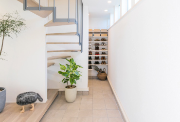 Aタイプは、2階のプライベート空間を充実させることに加え、リネン収納や玄関クローク、階段下収納など、大容量の収納スペースを各所に設けた暮らしやすいプランです。小さなお子さまとも一緒に寝れる広い主寝室と、洋服もたっぷりとしまえるウォークインクローゼットを確保しました。