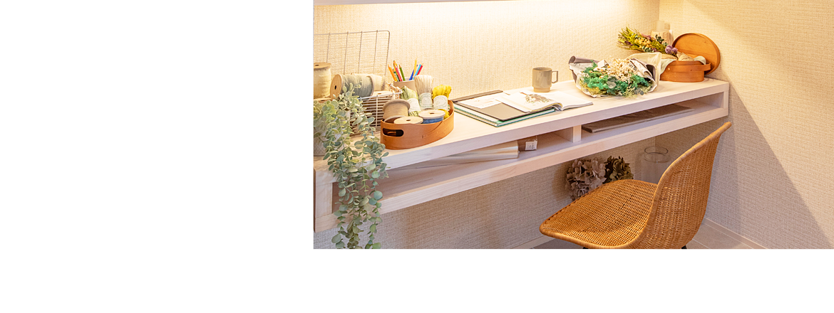 ご主人さまや奥さまの日々の生活に彩りを与えてくれる趣味趣向に合わせた造作家具・洗面台のオプションを豊富にご用意いたしました。