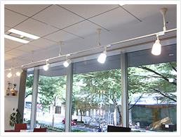 スポットライトやペンダントライトをいくつか展示しております。器具の大きさや、光の色合いをご確認いただけます。