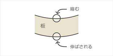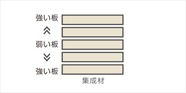 また、木がたわむときに、より圧のかかる外側に強い板を構成することで精度と強度を高めます。