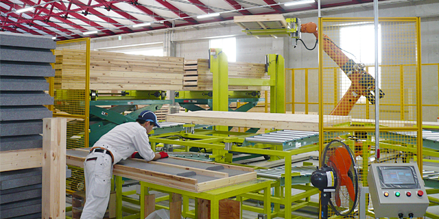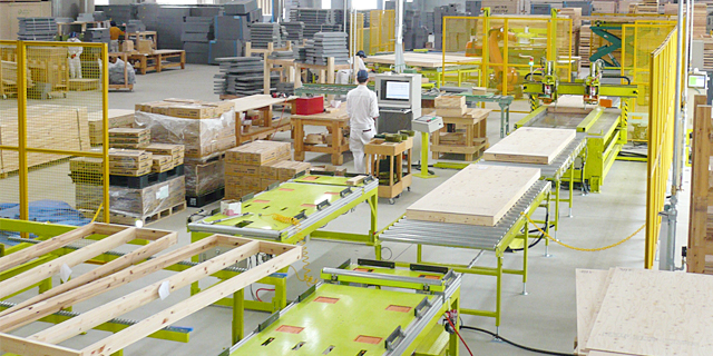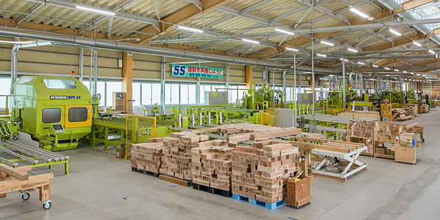 | 生産能力 | 集成材:約住宅240棟分/月 プレカット:約住宅150棟分/月 壁パネル・羽柄:約住宅150棟分/月 |